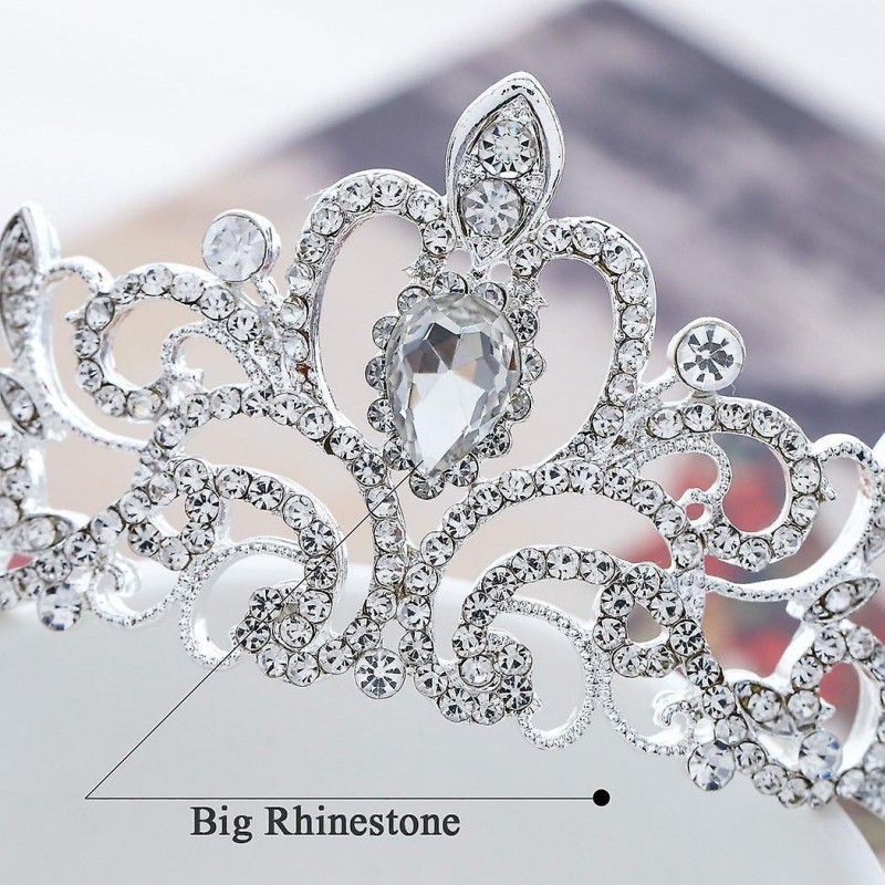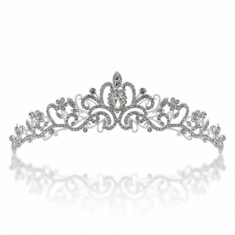Ce superbe diadème en argent convient à une princesse. Il présente de magnifiques tourbillons incrustés de cristaux et de strass scintillants. Il se coordonne parfaitement avec les robes de mariée blanches et blanches diamantées.